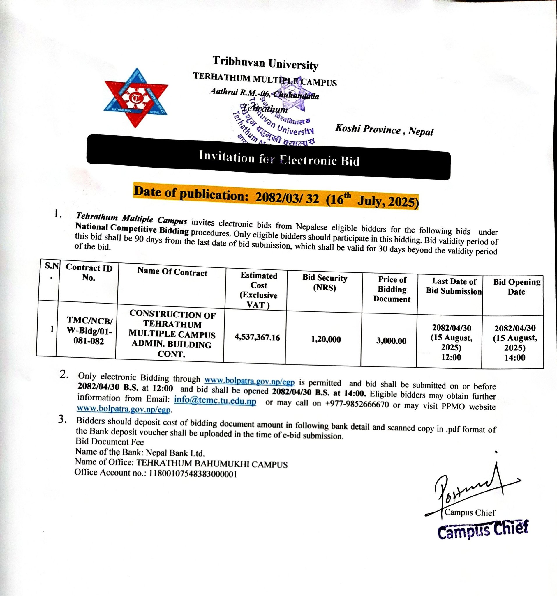 तेहथुम बहुमुखी क्याम्पसकाे नवनिर्मित शिक्षण भवनको उद्घाटन